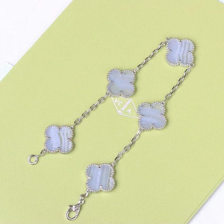 Blue Chalcedony Five-Flower Bracelet - Elegance and Good Luck