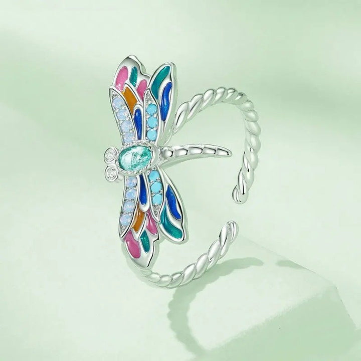 ˇShow YourselfˇEnamel Dragonfly Opening Ring Insect Adjustable Ring
