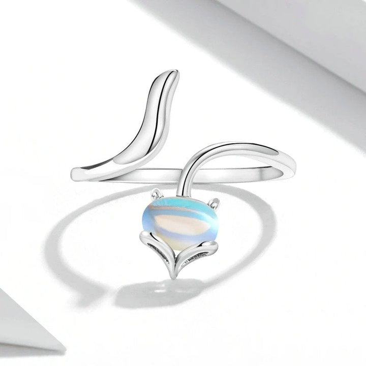ˇShow YourselfˇMoonstone Adjustable Ring 925 Sterling Silver Fox Shape Design Silver Ring