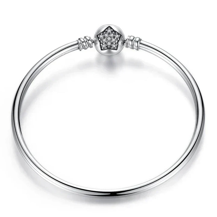 This charm bangle has a clean, elegant and modern look. It's made from sterling silver.Worn individually or stacked, silver bangles are fashion staples that never go out of style. Transform the bangle from daytime to evening wear by adding your favorite sparkling charms.